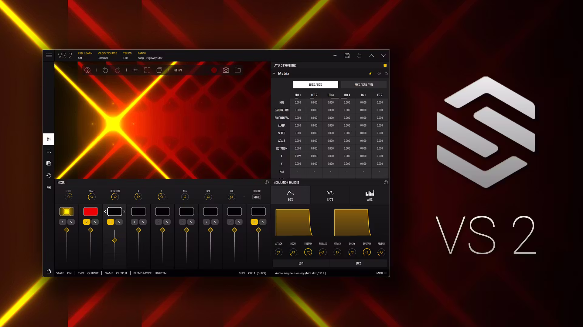 VS 2 is a dedicated software application/plugin (VST, AU, etc.) for creating graphics that respond to audio and MIDI inputs. Instead of generating sound, it